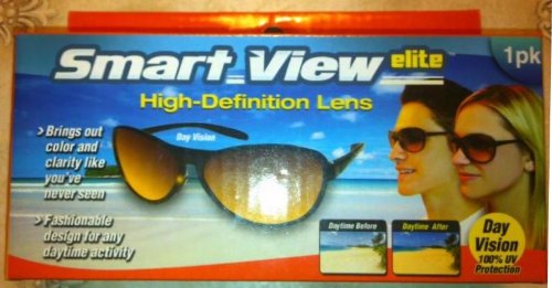 This is a pair of Smart View Elite High-Definition lens sunglasses. Brings out color and clarity like youve never seen. Day vision 100% UV Protection. Fashionable design for any daytime activity